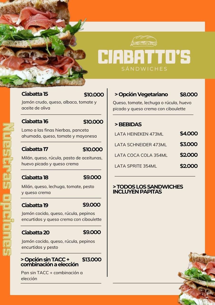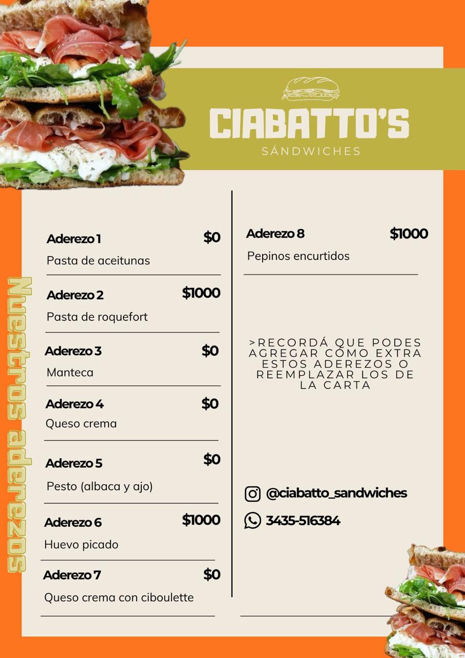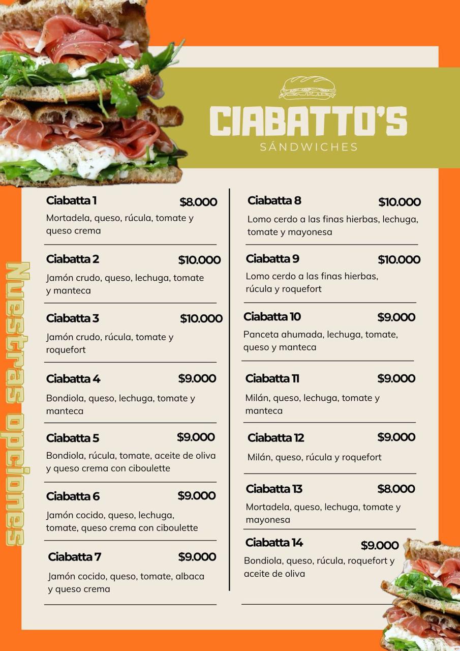 ciabatto sandwicheria Sandwiches de fiambres para todos los gustos Abierto de viernes a domingos Pedidos de 20hs a 23:30hs Delivery Tel: 3435516384 Instagram